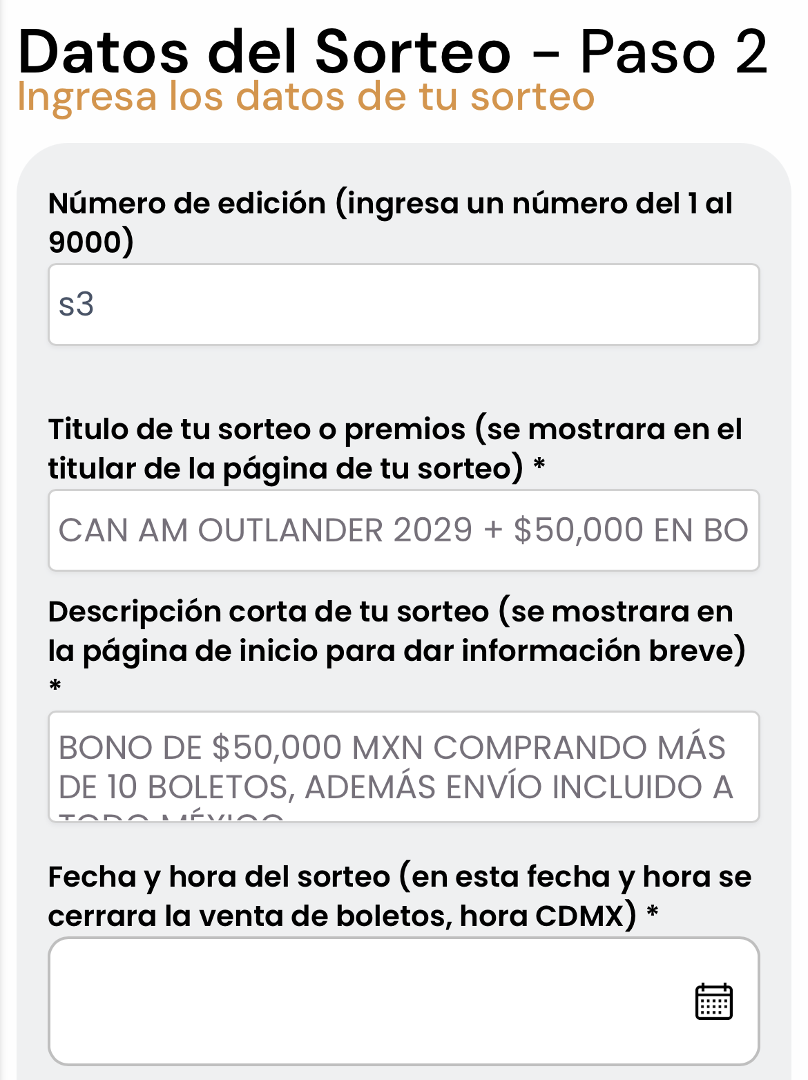 Crea y publica tus sorteos tu mismo